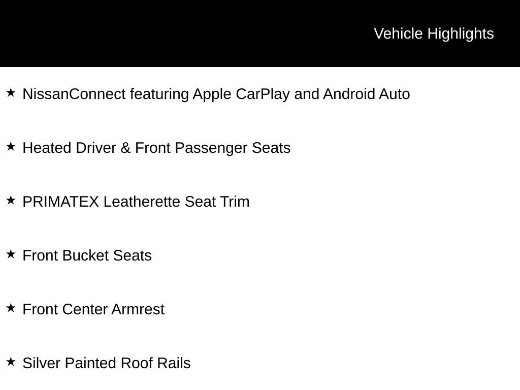 - Smart device integration: NissanConnect featuring Apple CarPlay and Android Auto