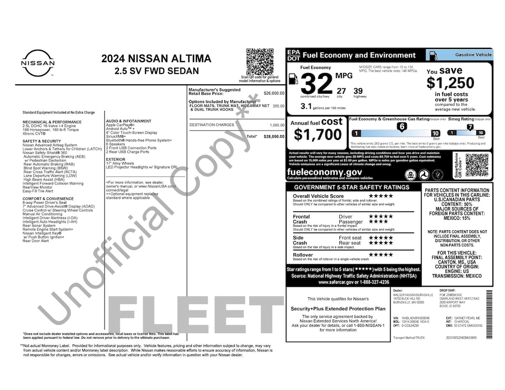 2024 NISSAN ALTIMA, NISSAN CERTIFIED!!, RARE COLOR!!, Air Conditioning, Blind Spot Warning, Front anti-roll bar, Front Bucket Seats, Front Center Armrest, Knee airbag, Low tire pressure warning, NissanConnect featuring Apple CarPlay, Occupant sensing airbag, Power driver seat, Power steering, Power windows, Remote keyless entry, Steering wheel mounted audio controls. Certified.