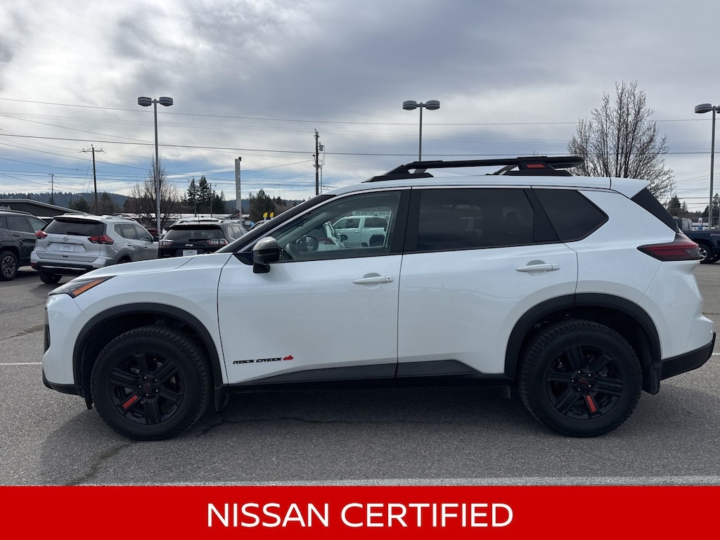 2025 NISSAN ROCK CREEK ROGUE!!, APPLE CAR PLAY!!, LED HEADLIGHTS!!, BLIND SPOT WARNING!!, HEATED LEATHER APPOINTED SEATS!!, LOW MILES!!, 4-Way Power Passenger Seat, Android Auto and Apple CarPlay, Auto-Dimming Inside Mirror, Front Center Armrest, Heated door mirrors, Heated Front Bucket Seats with 8-Way Power Driver Seat, Heated front seats, Motion-Activated Power Liftgate, Power door mirrors, Power driver seat, Power Liftgate, Power steering, Premium Paint, Reverse Tilt-Down Outside Mirrors with Integrated Turn Signals, Wireless Charging Pad. Certified. Nissan Certified Details: