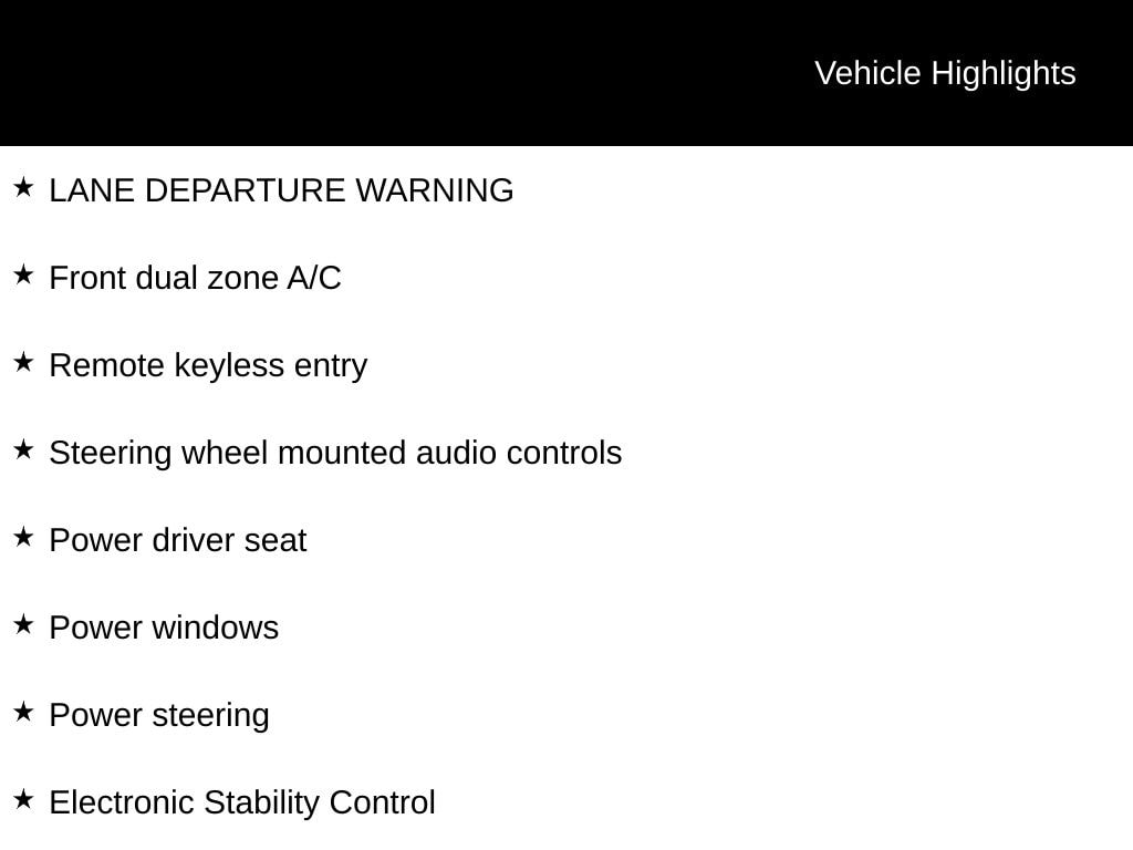 - Adaptive Cruise Control: Intelligent Cruise Control (ICC) w/Full Speed Range and Hold