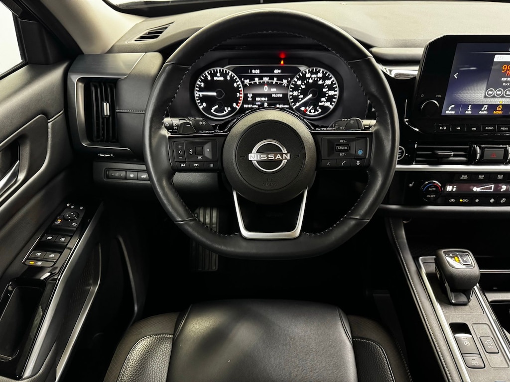 Nissan Pathfinder SL. Purchased the car July 2021 when they first came out. I love everything about this car. I have not had any issues to date. Just went thru a snow storm with about 7inches of ice and snow. I am on a pretty steep hill and zero issues in the snow and ice. I really can't think of an issue i have with this car. I have taken this on 9 hour trip with a total of seven and had no issues in the mountains. - 5.0